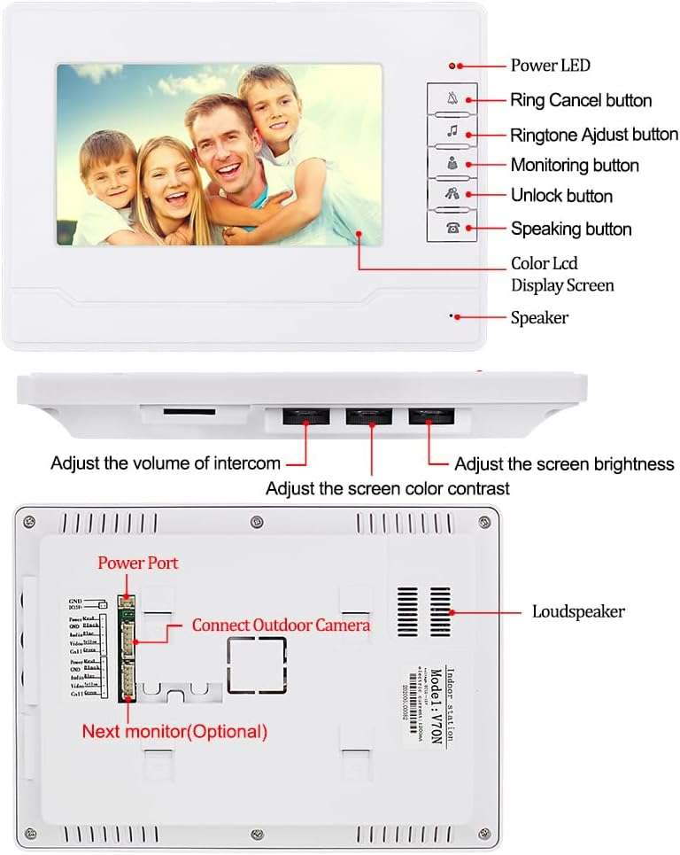 - Intercom with two options, video and audio chat, call forwarding between monitor and doorbell or monitor and monitor